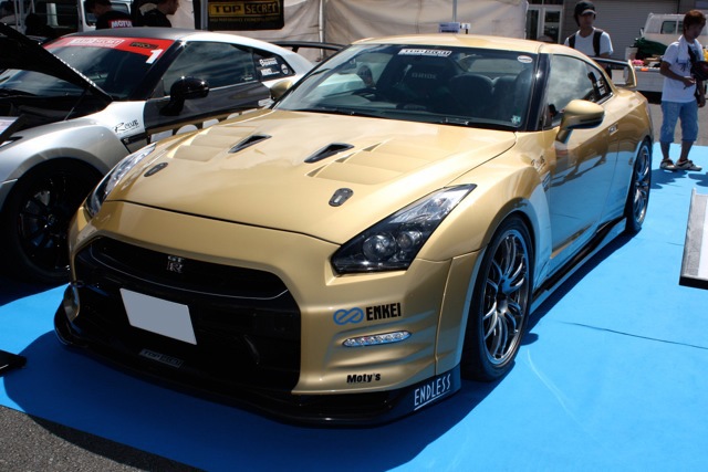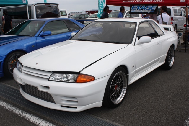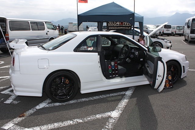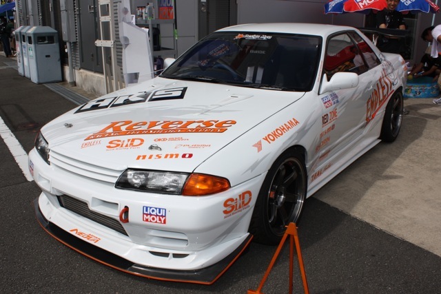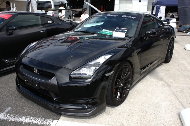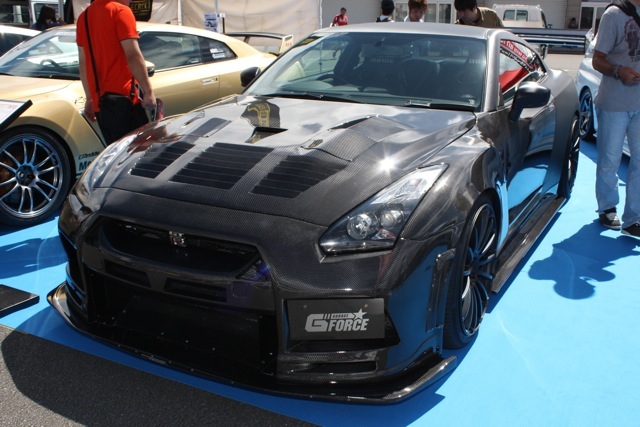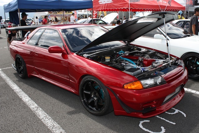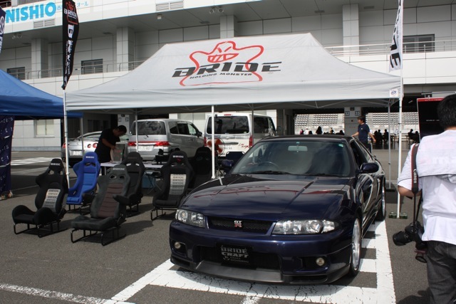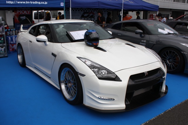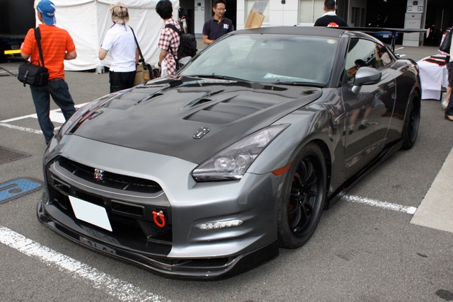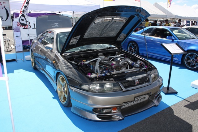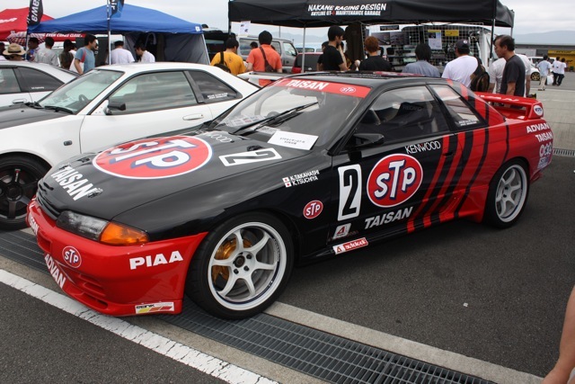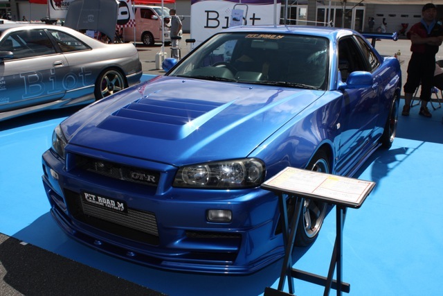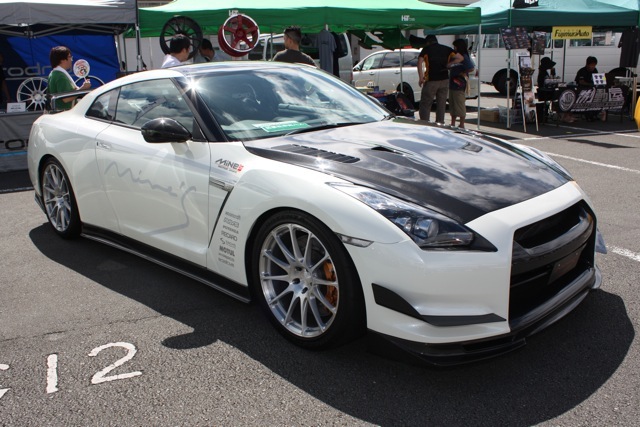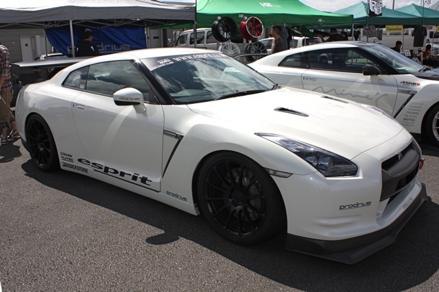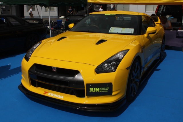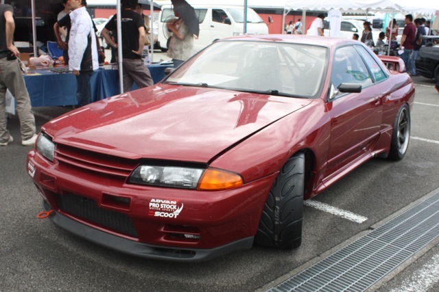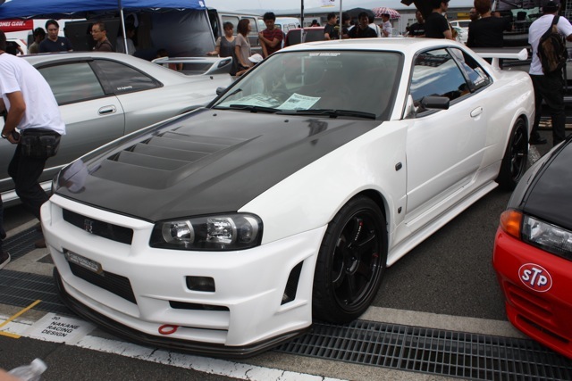今回も沢山の出展やデモカーが展示。各ショップやメーカーのチューニングカーにGT-Rファンはくぎづけに!! イベントでは、パレードラン、SUPER GTで活躍するドライバーの荒聖治選手、松田次男選手によるトークショー、参加者によるフリー走行、観客の注目を一番集めたのは、富士のストレートを使用した、デモカーによるゼロヨンバトル。