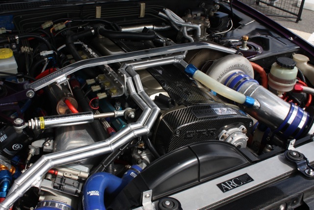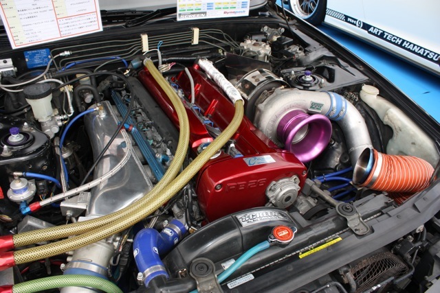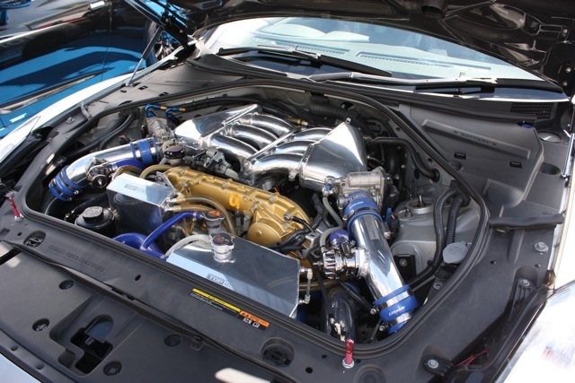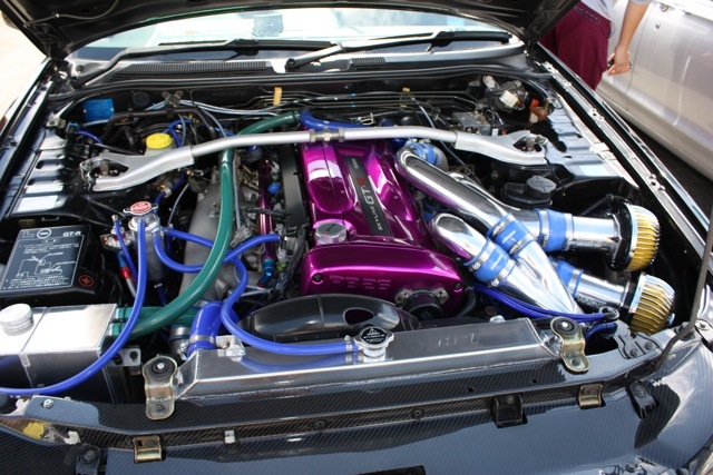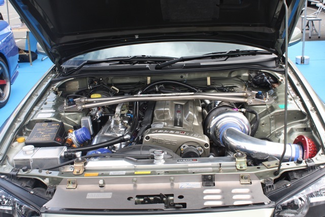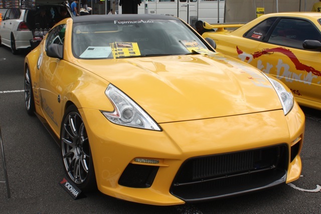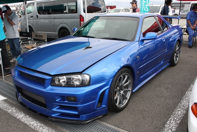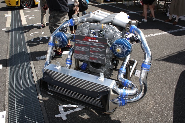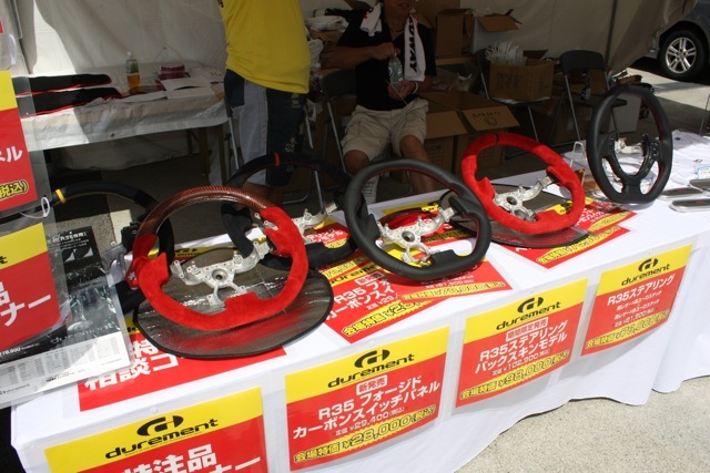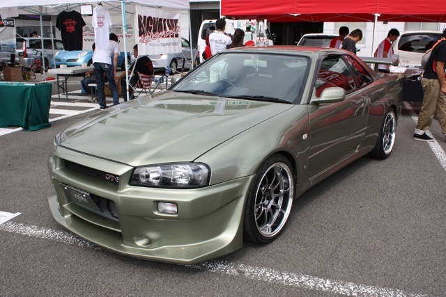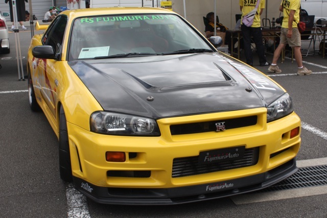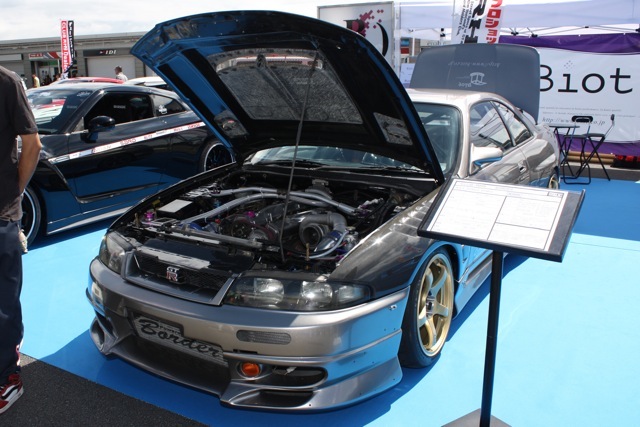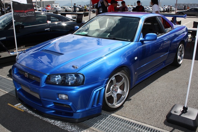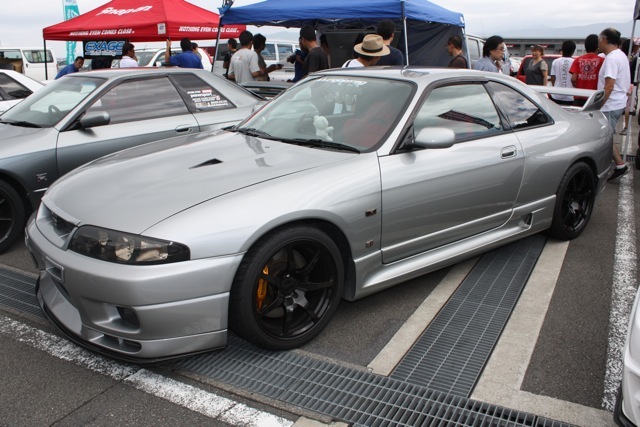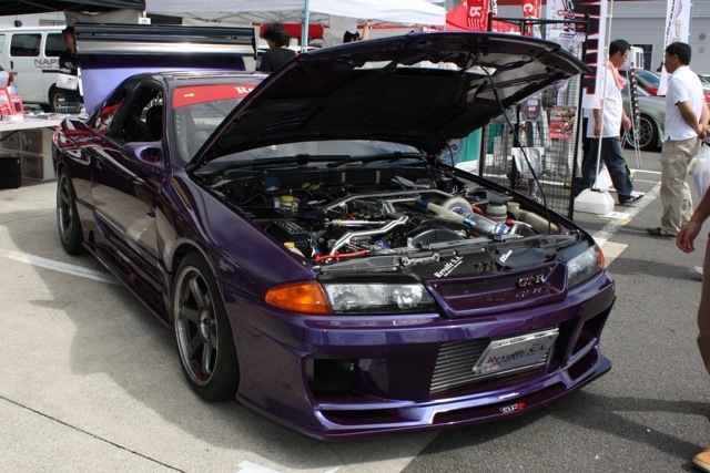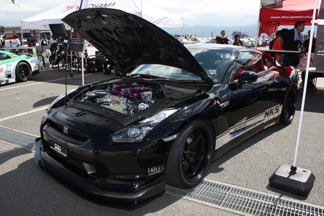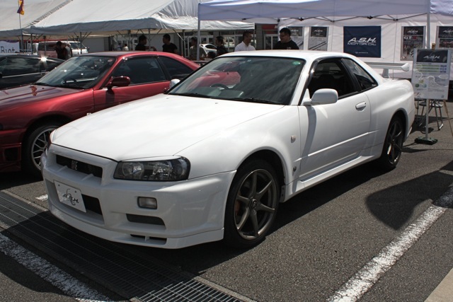 今回も沢山の出展やデモカーが展示。各ショップやメーカーのチューニングカーにGT-Rファンはくぎづけに!! イベントでは、パレードラン、SUPER GTで活躍するドライバーの荒聖治選手、松田次男選手によるトークショー、参加者によるフリー走行、観客の注目を一番集めたのは、富士のストレートを使用した、デモカーによるゼロヨンバトル。