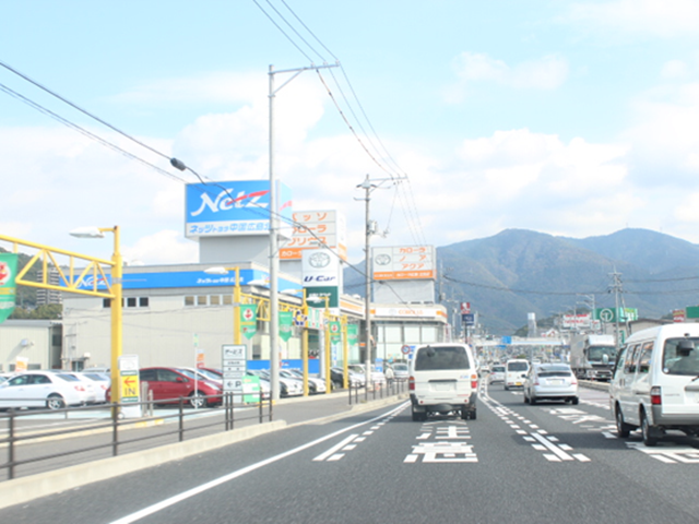 国道54号線をそのまままっすぐ北上して頂きますと、左手にネッツトヨタさんとトヨタカローラが見えてきます。