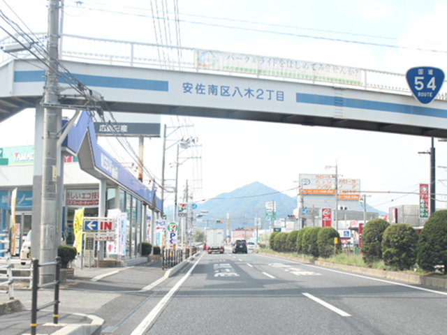国道54号線を広島市内方面へお越しいただくと、八木2丁目の陸橋が見えてきます。