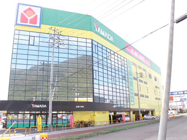 陸橋を越えますと、左手にヤマダ電機さんが見えます。ヤマダ電機さんの向かいですが、右折禁止ですので、交差点を左折し、Uターンしてください。