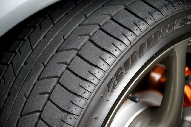 外装は、ノーマル状態をキープしており、純正アルミホイールには新車装着時のポテンザRE040(8分山)が装着。リアバンパーには、専用クローム調仕上げの立体グレードエンブレムが誇らしげに輝きます。フロア下には、アドバンスドエアロシステムが付き、コンディションも良好です。