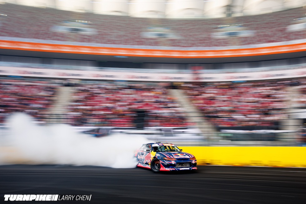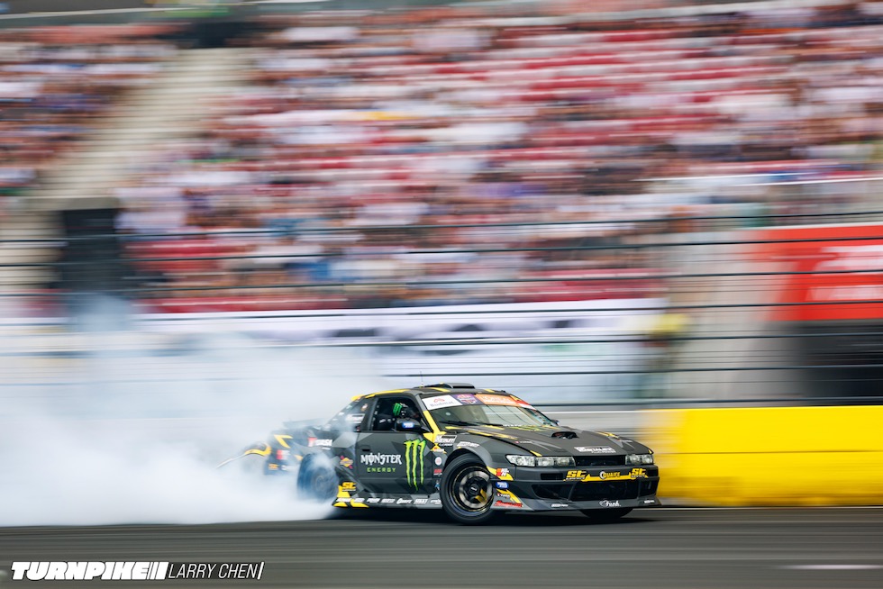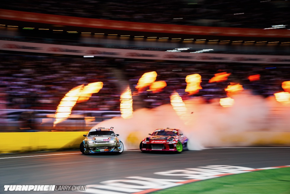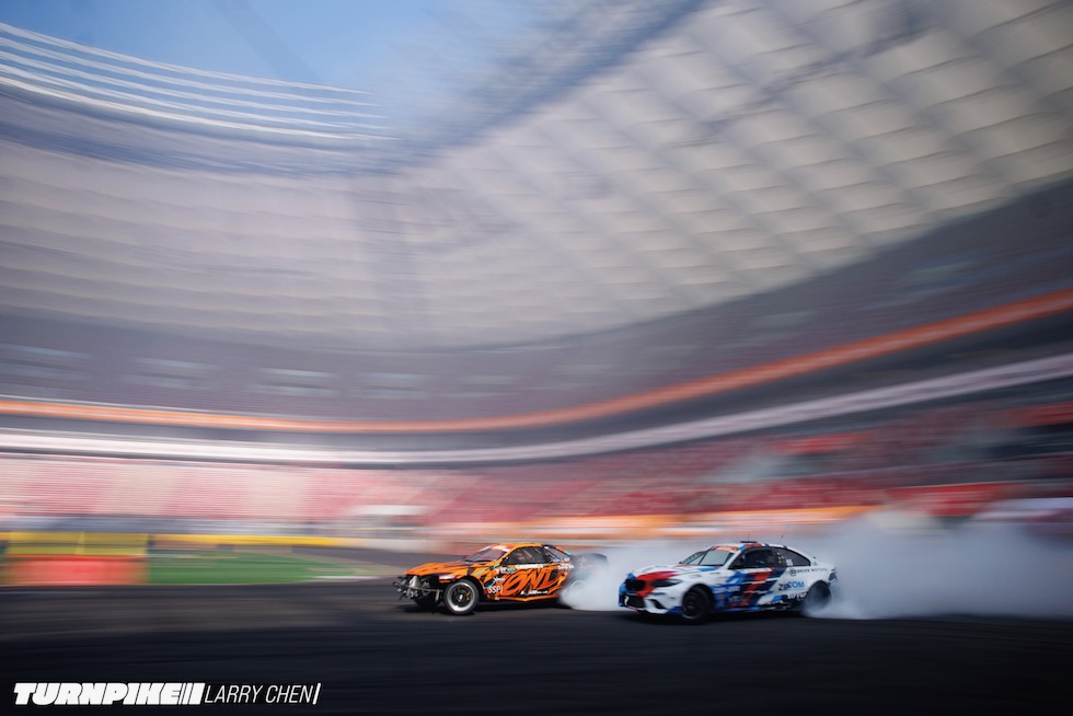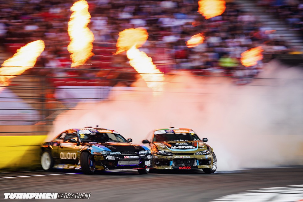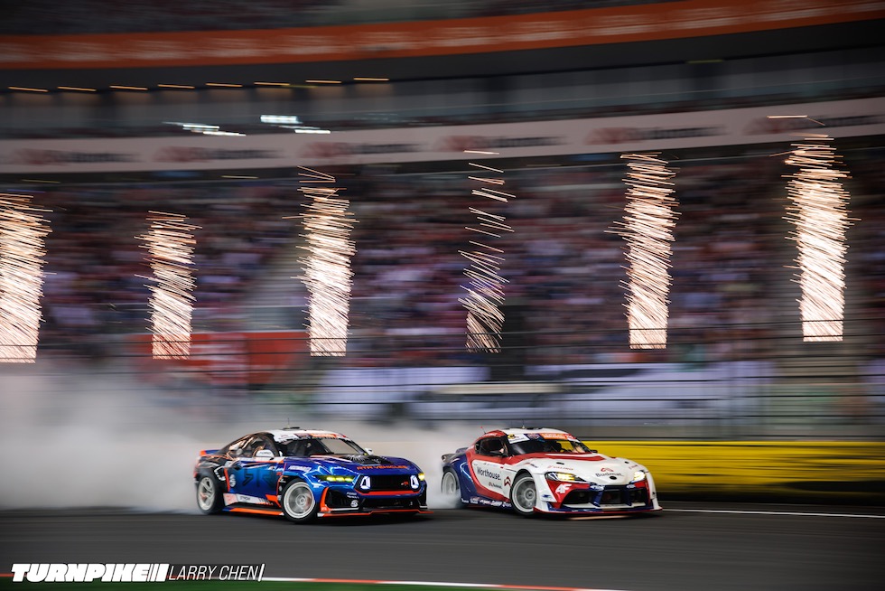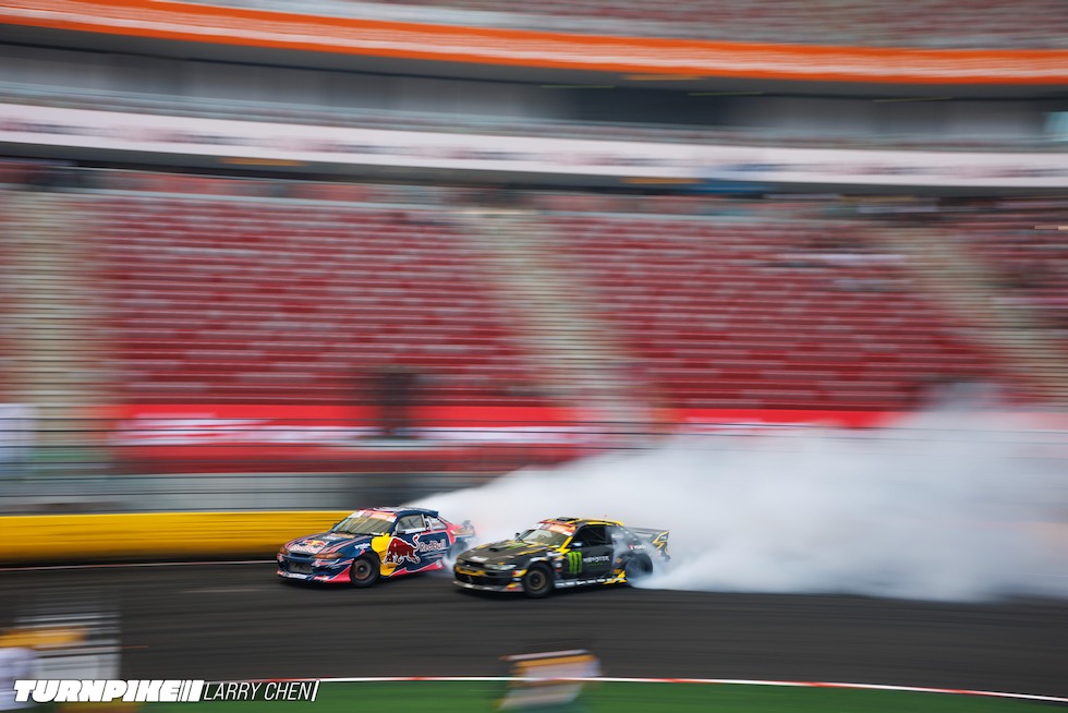 ドリフトマスターズは、2日間にわたって繰り広げられる濃密なイベントだ。初日はプラクティス、予選、そして夜まで続く少数のタンデムバトルで締めくくられる。コースレイアウトが独特なため、ドライバーたちは予選前にほんの数本しか練習走行できないというタフな環境。2日目は多くのドリフトイベントと同じ流れで、プラクティスの後に本戦のバトルが始まる。