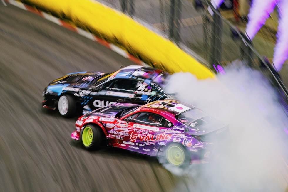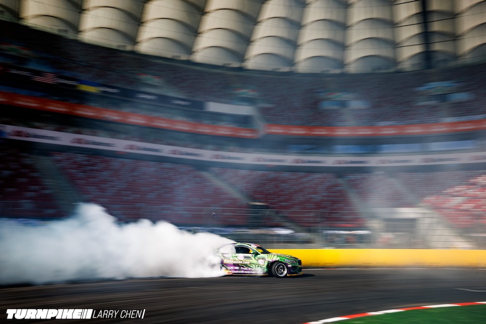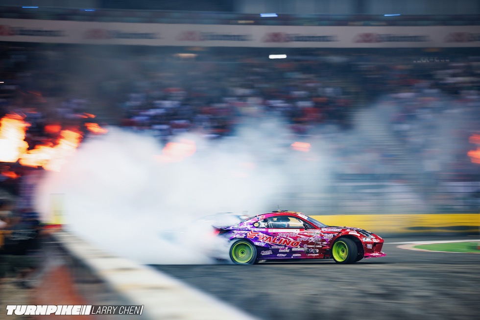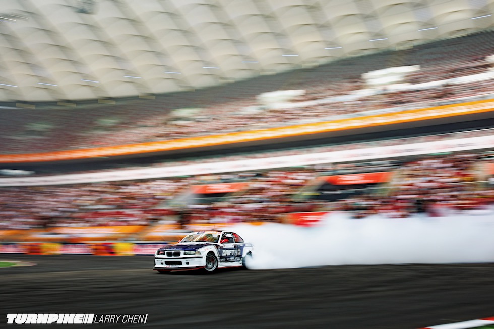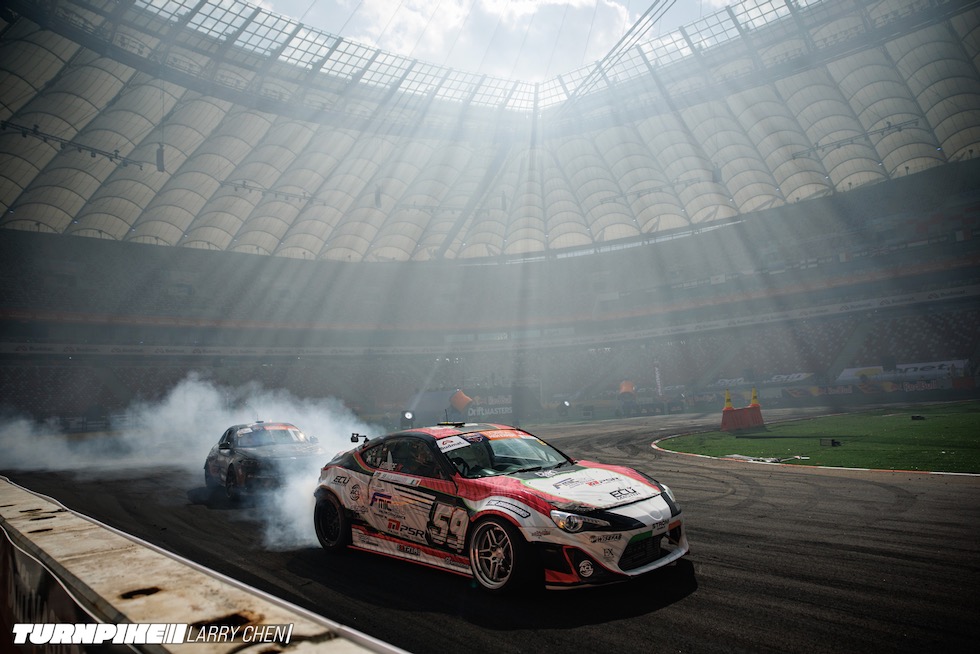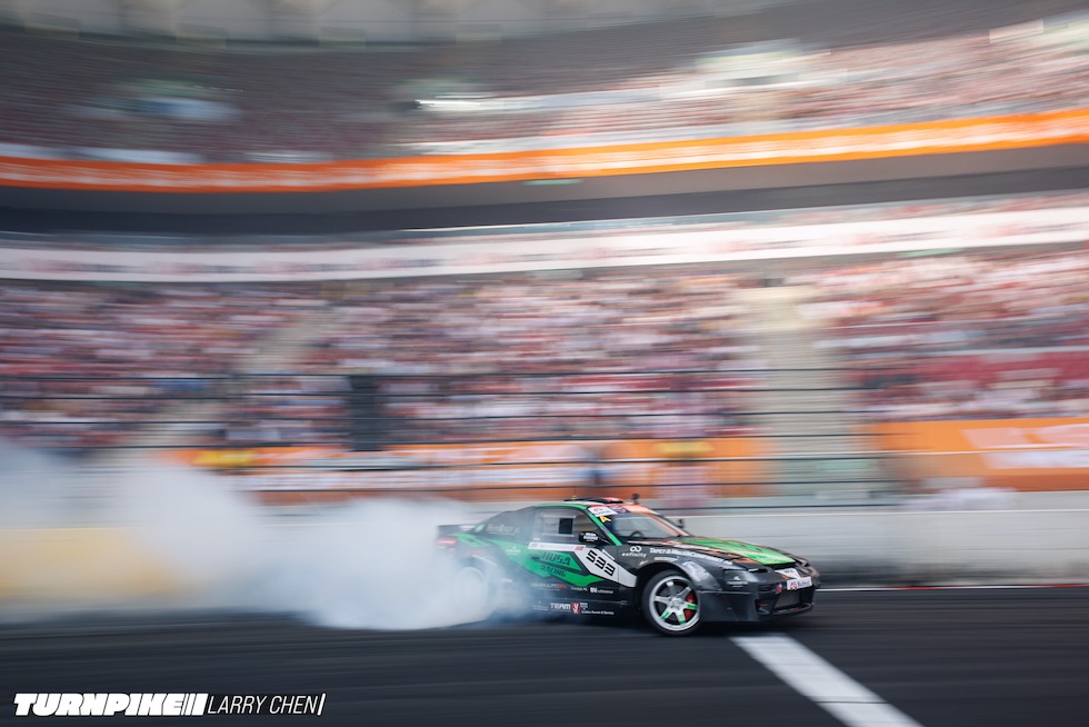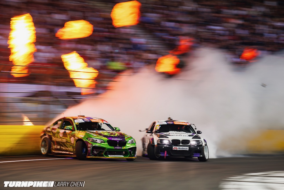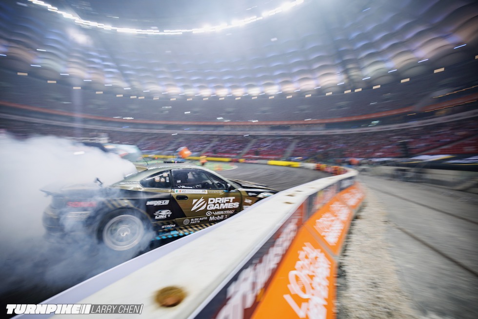 ドリフトマスターズは、2日間にわたって繰り広げられる濃密なイベントだ。初日はプラクティス、予選、そして夜まで続く少数のタンデムバトルで締めくくられる。コースレイアウトが独特なため、ドライバーたちは予選前にほんの数本しか練習走行できないというタフな環境。2日目は多くのドリフトイベントと同じ流れで、プラクティスの後に本戦のバトルが始まる。