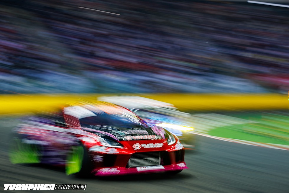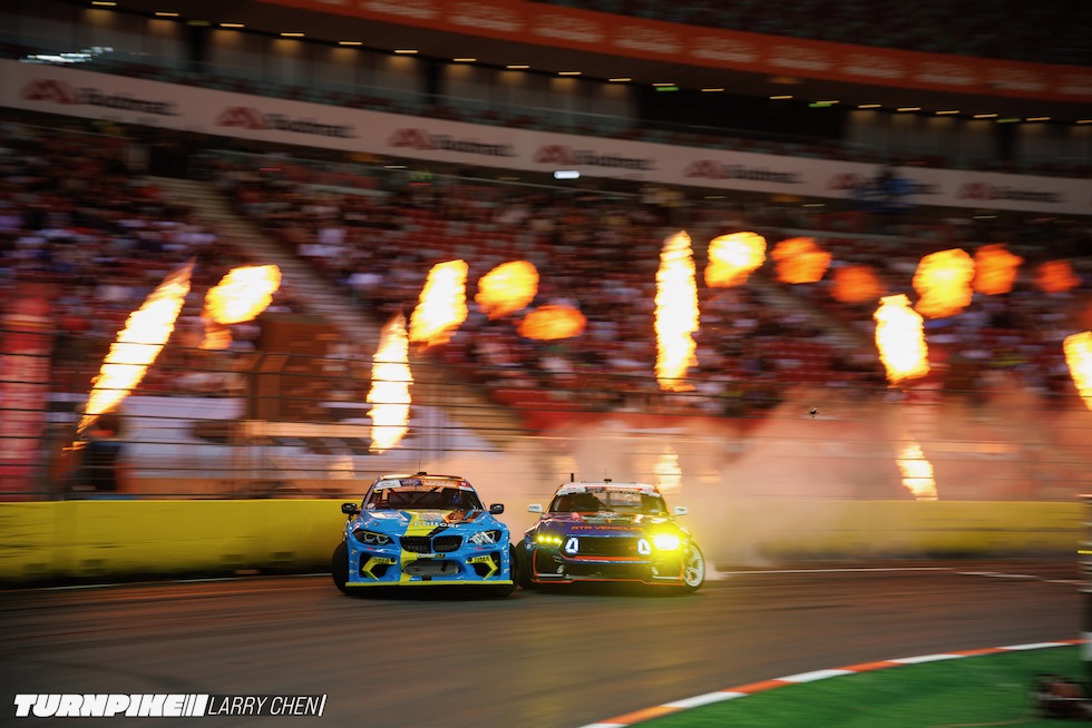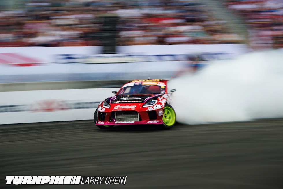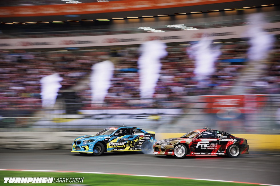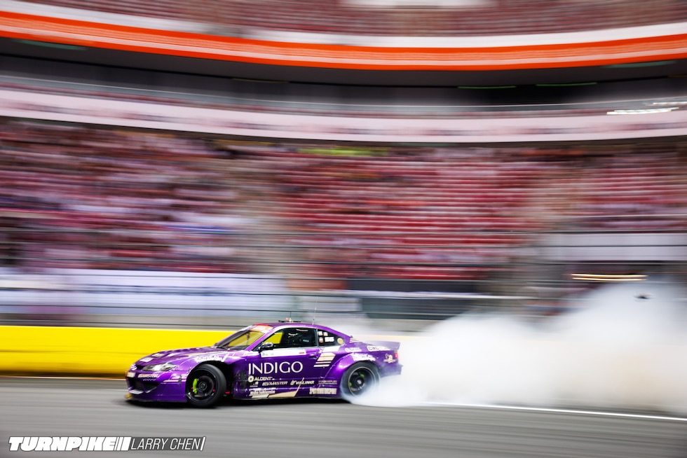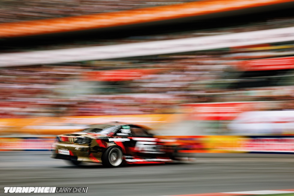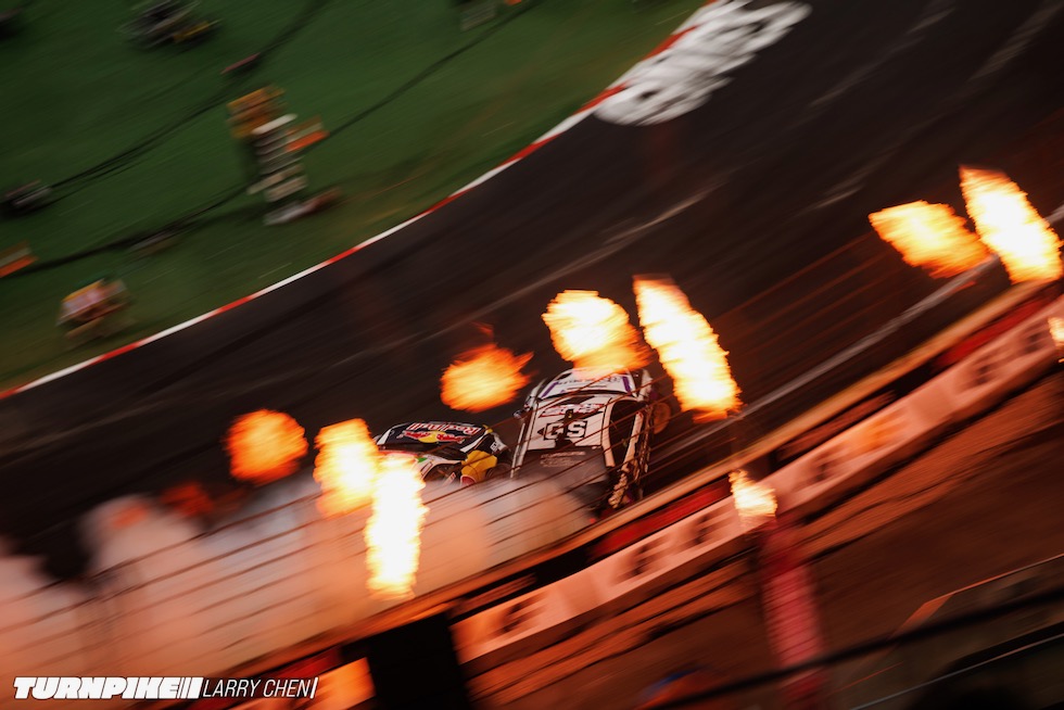 ドリフトマスターズは、2日間にわたって繰り広げられる濃密なイベントだ。初日はプラクティス、予選、そして夜まで続く少数のタンデムバトルで締めくくられる。コースレイアウトが独特なため、ドライバーたちは予選前にほんの数本しか練習走行できないというタフな環境。2日目は多くのドリフトイベントと同じ流れで、プラクティスの後に本戦のバトルが始まる。