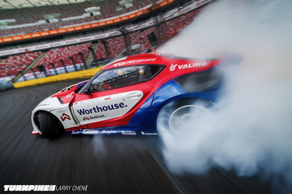 俺がドリフトマスターズに本格的に注目し始めたのは2019年。ピオトル・ウィエチェクと彼のWorthouseチームが、フォーミュラドリフトでの3シーズンを経て、活動の重心をこのシリーズに移した頃だった。2023年、ドリフトマスターズはワルシャワの名門サッカースタジアムで最終戦を開催。そしてその光景は――俺の目には、まさに壮観だった。5万人の満員観客、炸裂する花火、完璧な雰囲気。あの夜には、ドリフトの“すべてのバイブス”が詰まっていた。