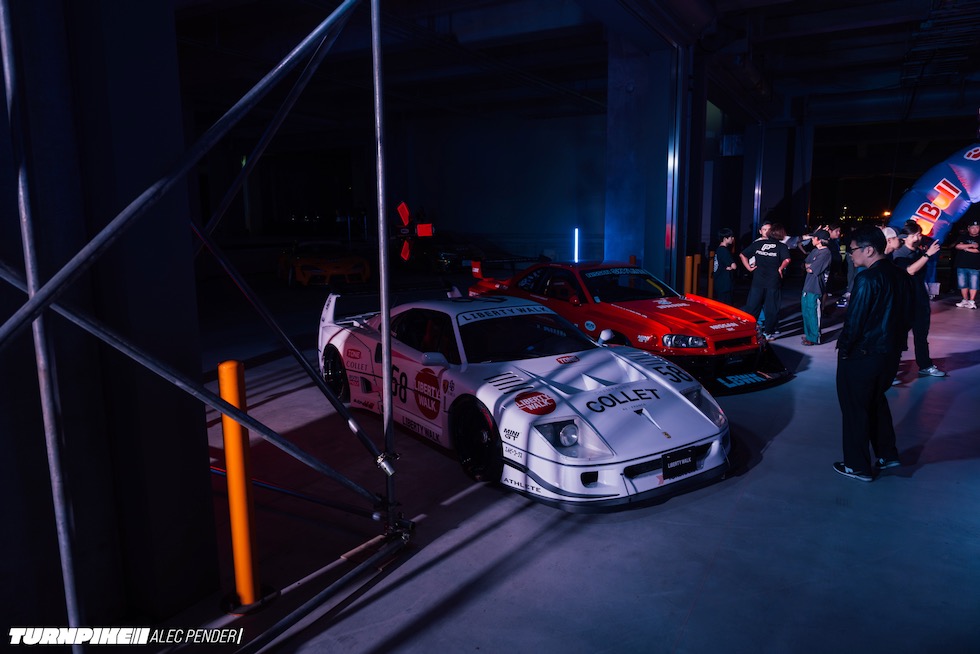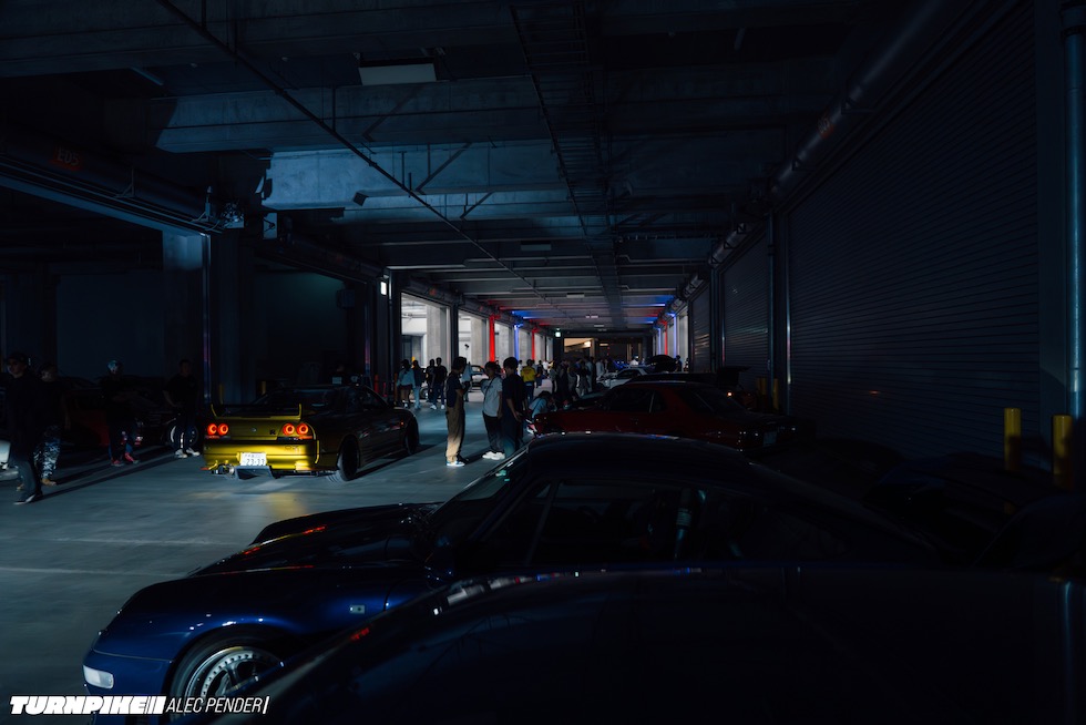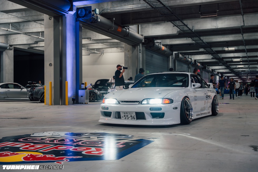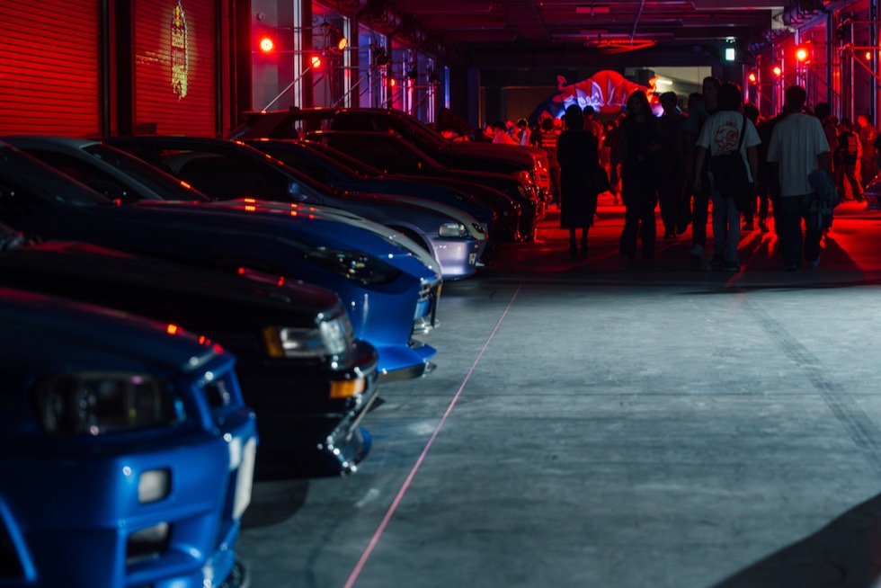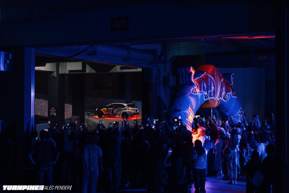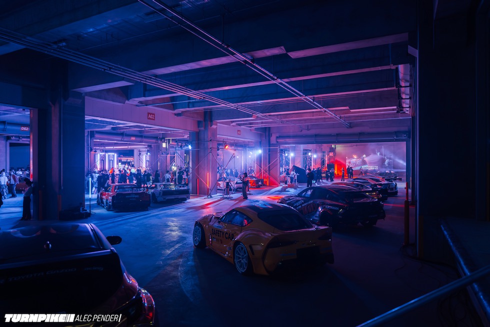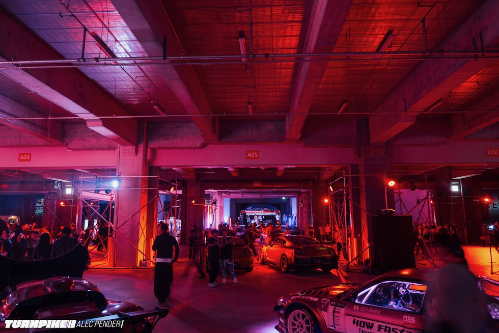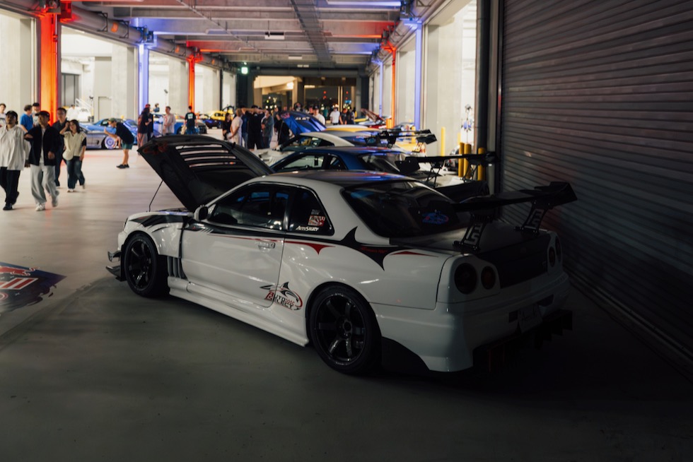 コンクリートの立体迷路を、ストロボとLEDストリップ、そしてレッドブルのサインが照らし出す中を進んでいく。3階にたどり着いた瞬間、そこが“現場”だとすぐに分かった。チューニング車の海を抜け、ビートを刻むDJブース、フードやドリンクの屋台、見覚えのある顔ぶれが手を振りながら出迎えてくれる。そして俺たちは、あらかじめ割り当てられたスポットへと案内された。