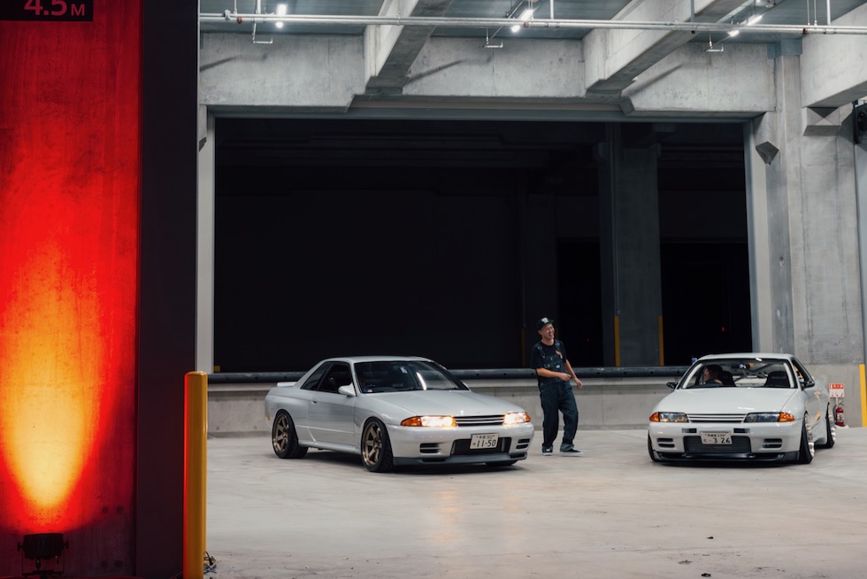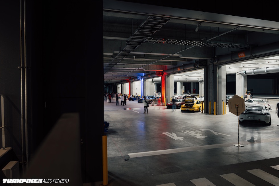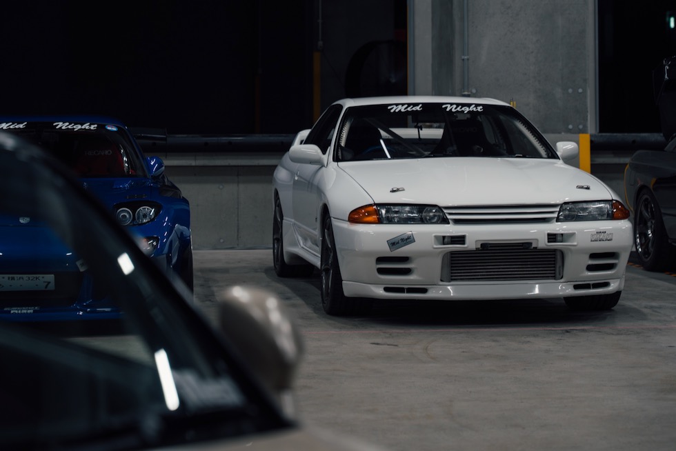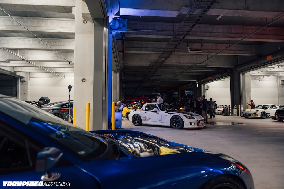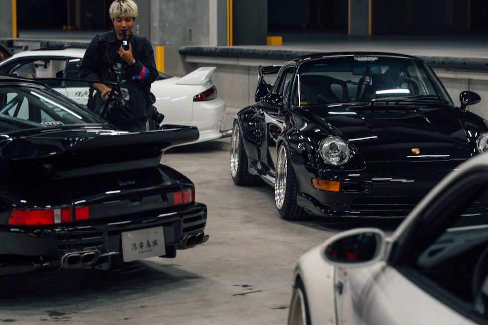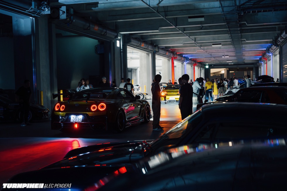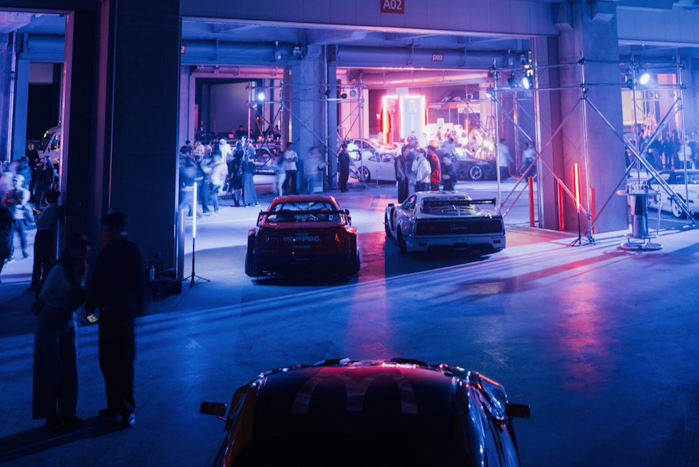コンクリートの立体迷路を、ストロボとLEDストリップ、そしてレッドブルのサインが照らし出す中を進んでいく。3階にたどり着いた瞬間、そこが“現場”だとすぐに分かった。チューニング車の海を抜け、ビートを刻むDJブース、フードやドリンクの屋台、見覚えのある顔ぶれが手を振りながら出迎えてくれる。そして俺たちは、あらかじめ割り当てられたスポットへと案内された。