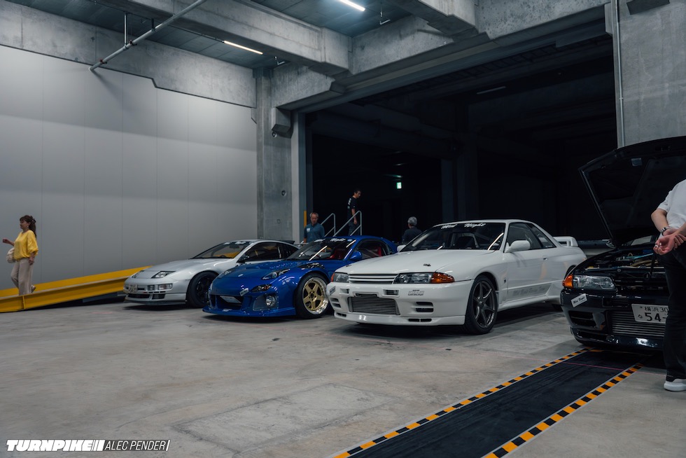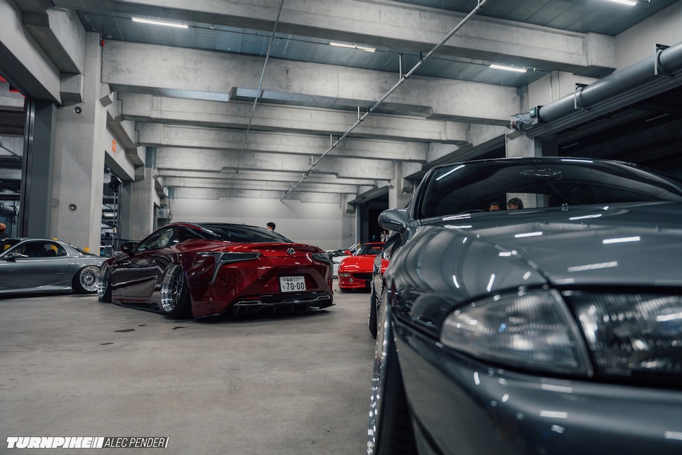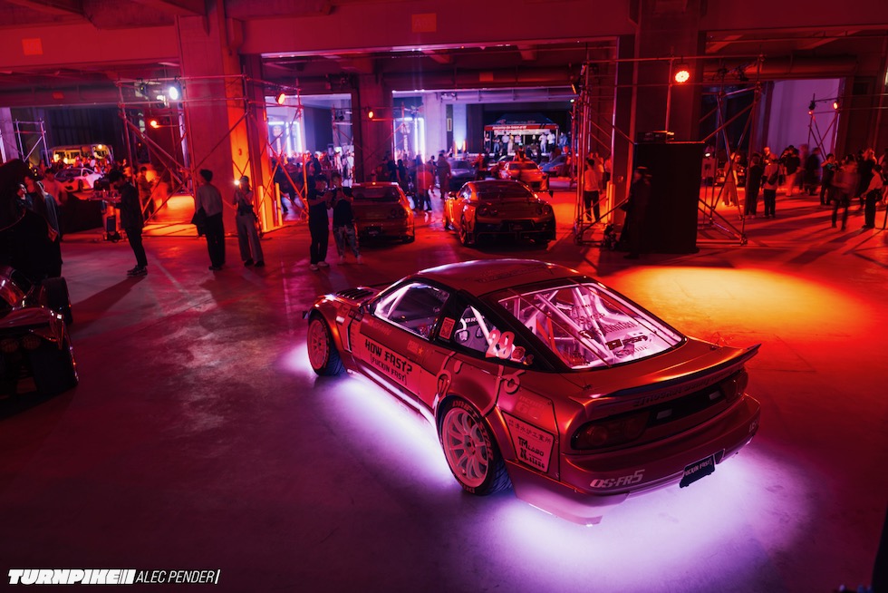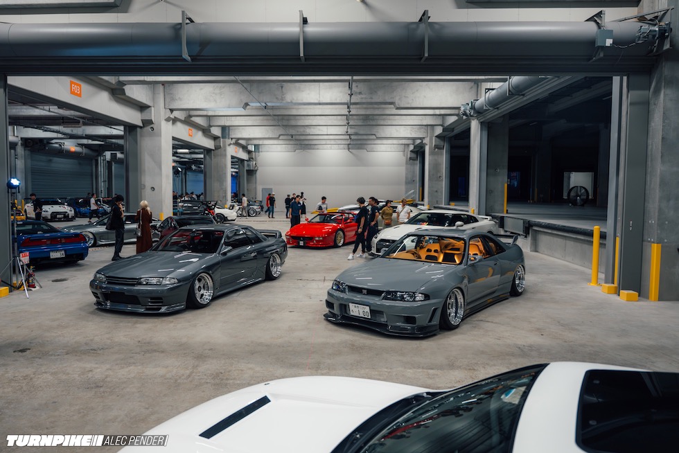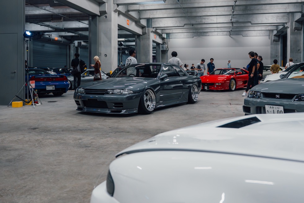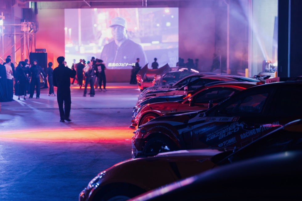 そこに集まっていたのは、まさにJDMの縮図だった。トップシークレットのスモーキー、RE雨宮の雨さん、ヴェイルサイドの横幕さんといった往年のチューニングレジェンドから、リバティウォークの加藤さんやTRA京都の三浦慶といった新世代の顔ぶれまで勢揃い。プロドライバー、ドリフター、ショップオーナー、ビルダー、メディア、インフルエンサー――まるで日本のチューニングシーンがその夜、丸ごと一つのフロアに凝縮されたようだった。