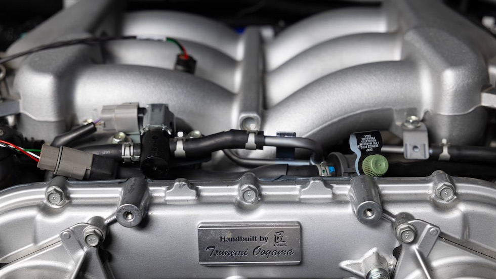 モントレー・カーワークで公開された QX80 Track Specですら十分に狂っていたが、R-Spec はその上を行く。中心となるのは、あの“ゴジラ”を育てた 3.8 リッター V6ツインターボ、VR38DETT。しかも今回はただのVR38ではない。GT-R T-Specタクミエディションの選ばれしエンジンビルダー、大山常臣氏がこの一基のために組み上げたスペシャルユニットだ。Garrett G シリーズのタービンを左右に配置し、ETSのエキマニ、カスタムのフレックス燃料システムを採用。これらにより、最大 1,000馬力まで対応可能な仕様に仕上げられている。VR38 を7速ATに接続するため、インフィニティはCNC加工の専用アダプタープレートまで製作。