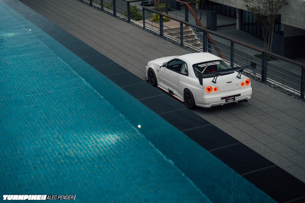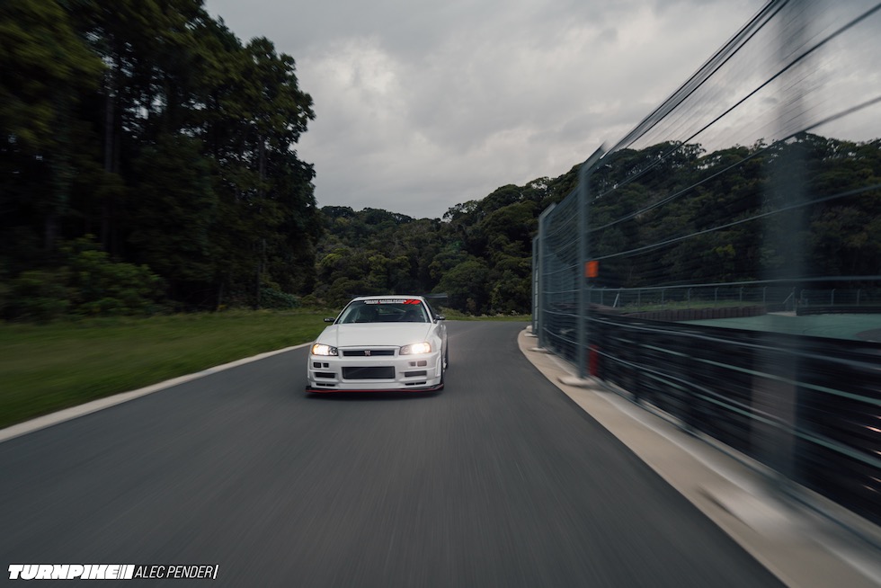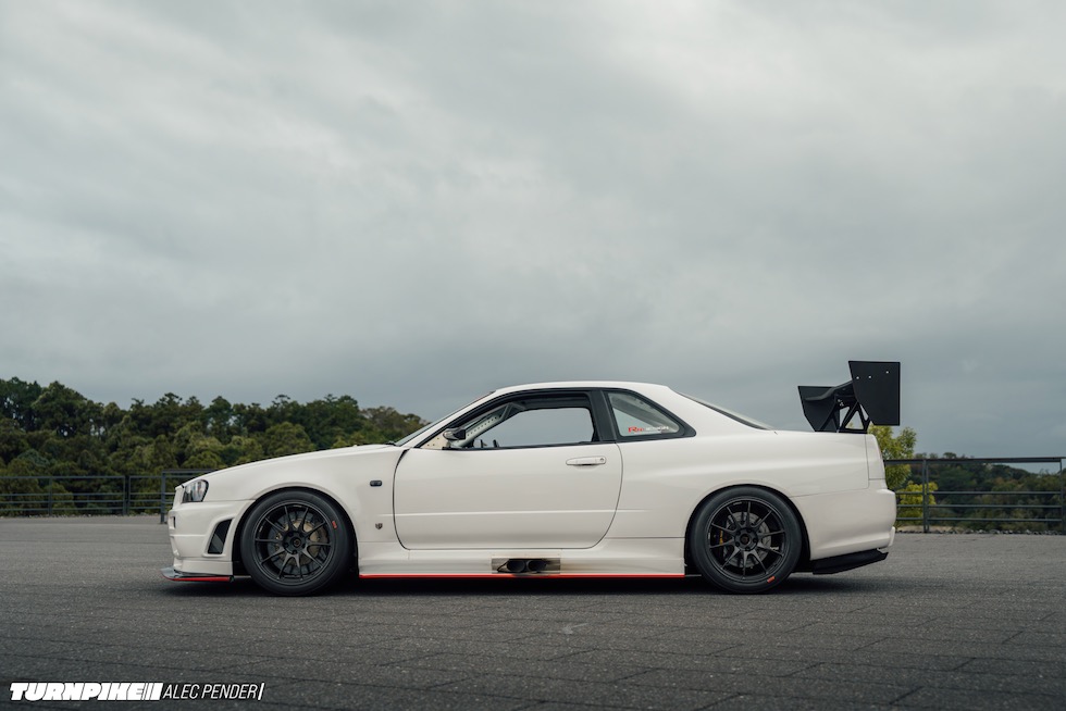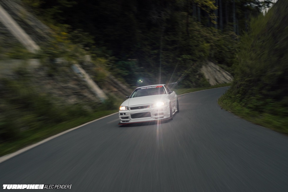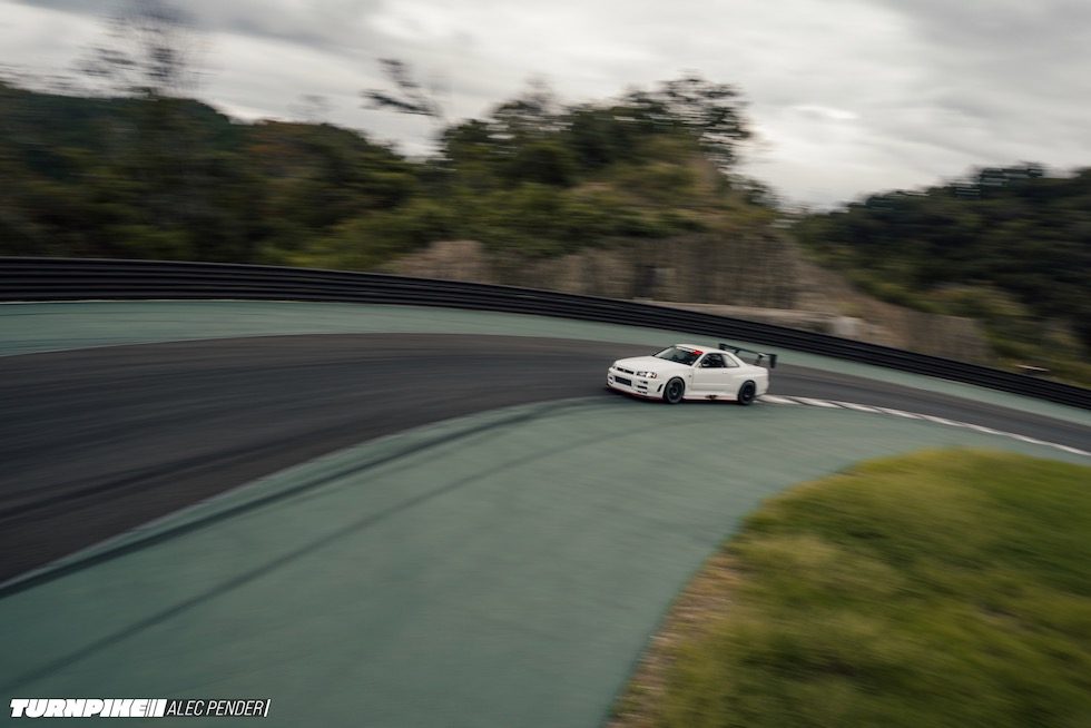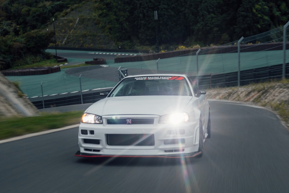 そもそもこのR34が、マガリガワのような静寂の中のサーキットを想定して組まれたとは思えない。だが、これほど似合う場所もない。まるで瞑想のようなスパ空間と、絶叫しながら駆け上がるタイムアタックR34。このギャップこそ、クルマという文化の面白さであり、そして、驚くほど「Japanese」だ。
