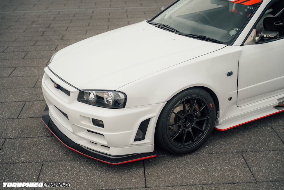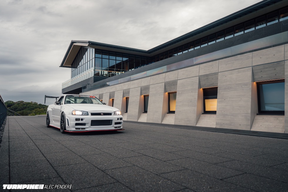 そして今回。東京近郊のこのサーキットを訪れた理由は、いつもとは少し違う刺客のためだった。普段はスーパーカー、ハイパーカーが支配するピットロードに、たまに刺激物が混ざることがある。この日はまさにそれ。その正体は──千馬力オーバーの怪物、日産スカイラインR34 GT-R