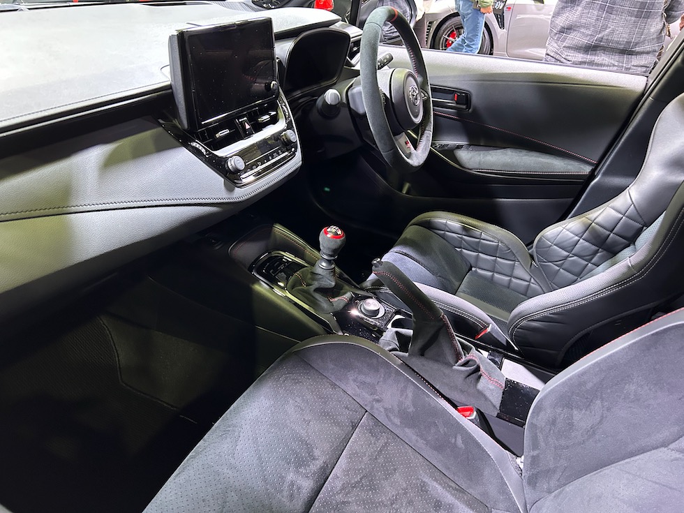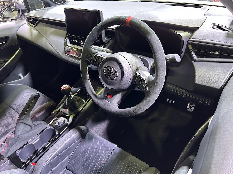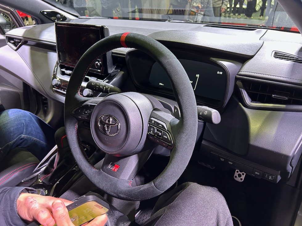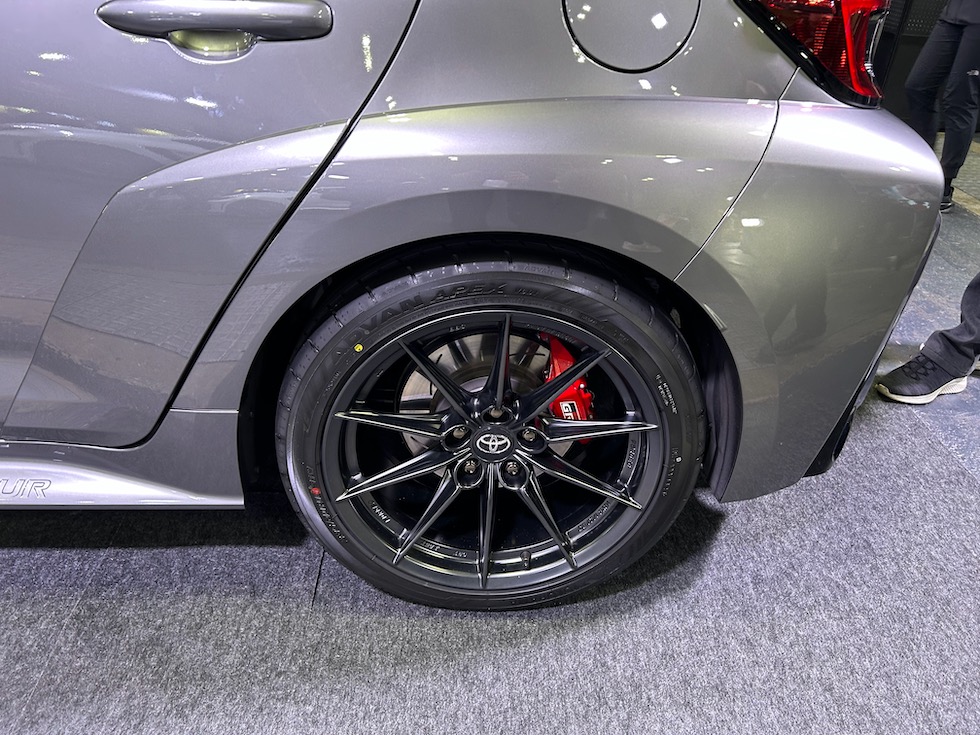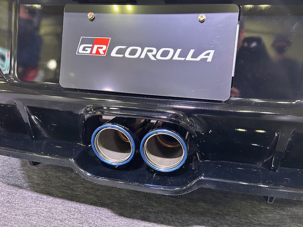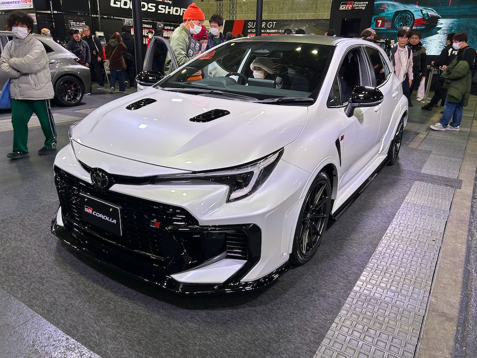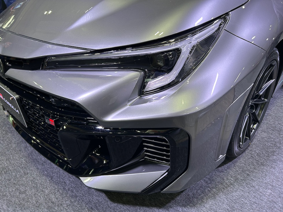 2025年中に販売される予定のGRカローラの後期モデル。フロントバンパーの形状が大きく変更になり冷却効果にかなり期待ができそうな印象。