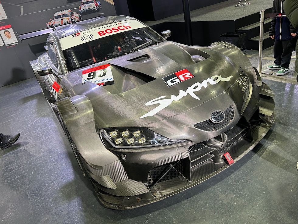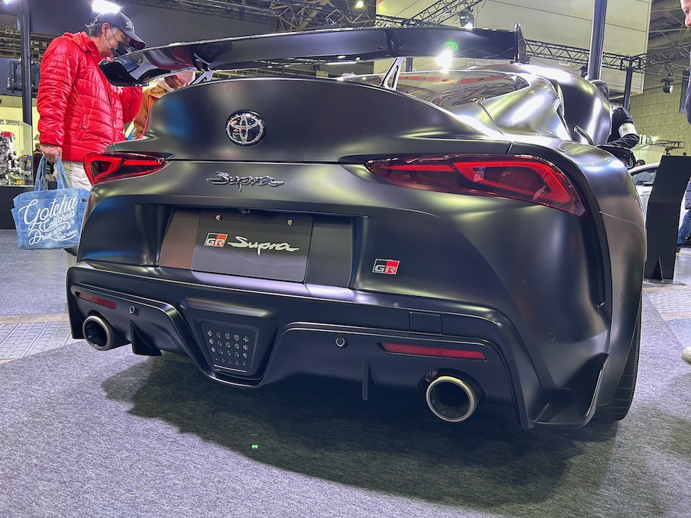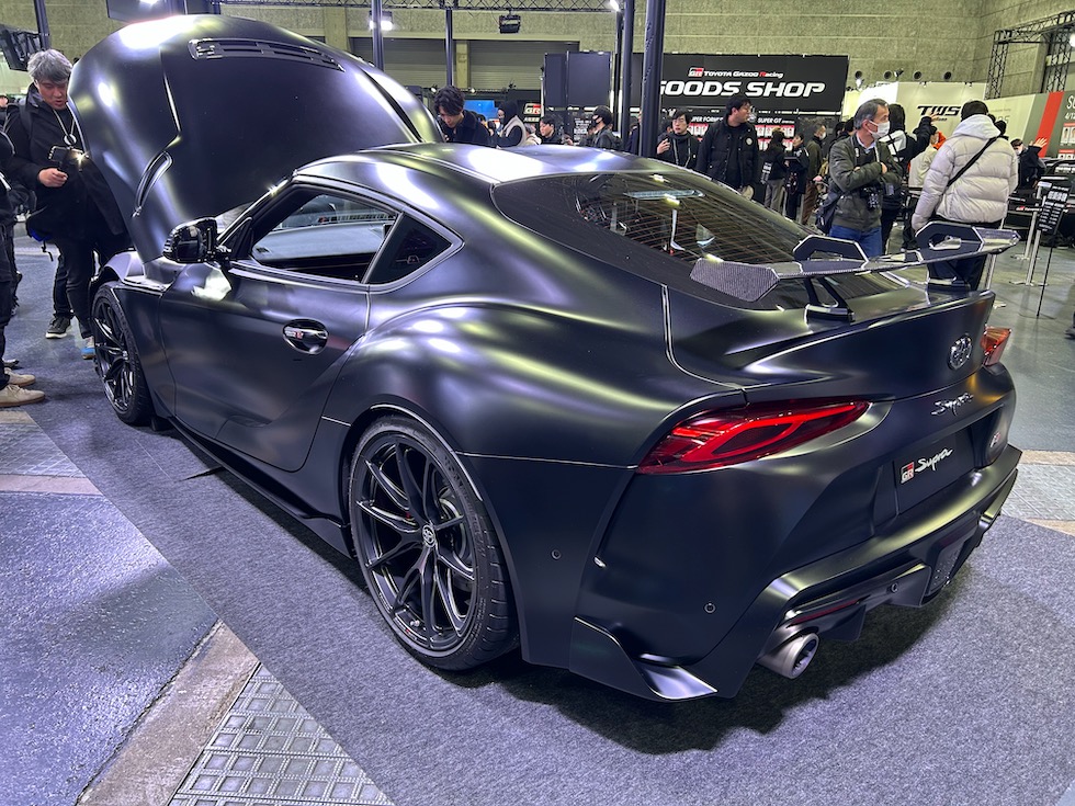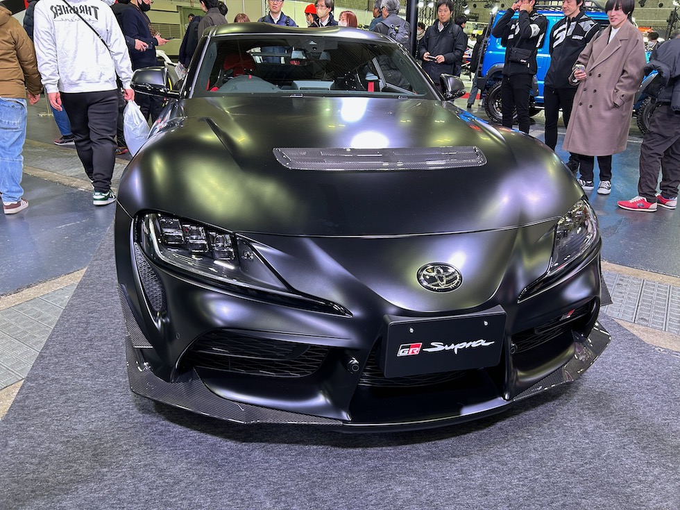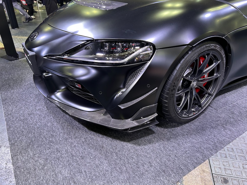 トヨタブースの目玉といえばスープラの現行モデル販売終了に伴い発表された。RZ ファイナルエディション、標準車両とはことなる補強パーツや、エアロパーツを装着する。特にフロントのスポイラーやリアウイングの迫力も生かしている。