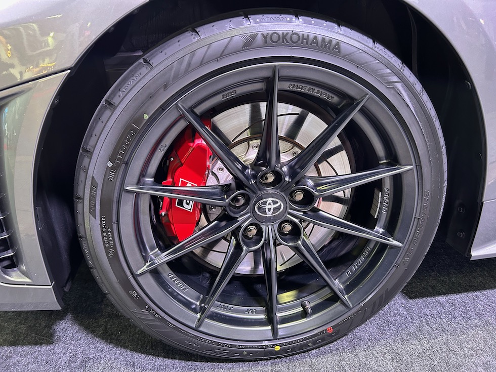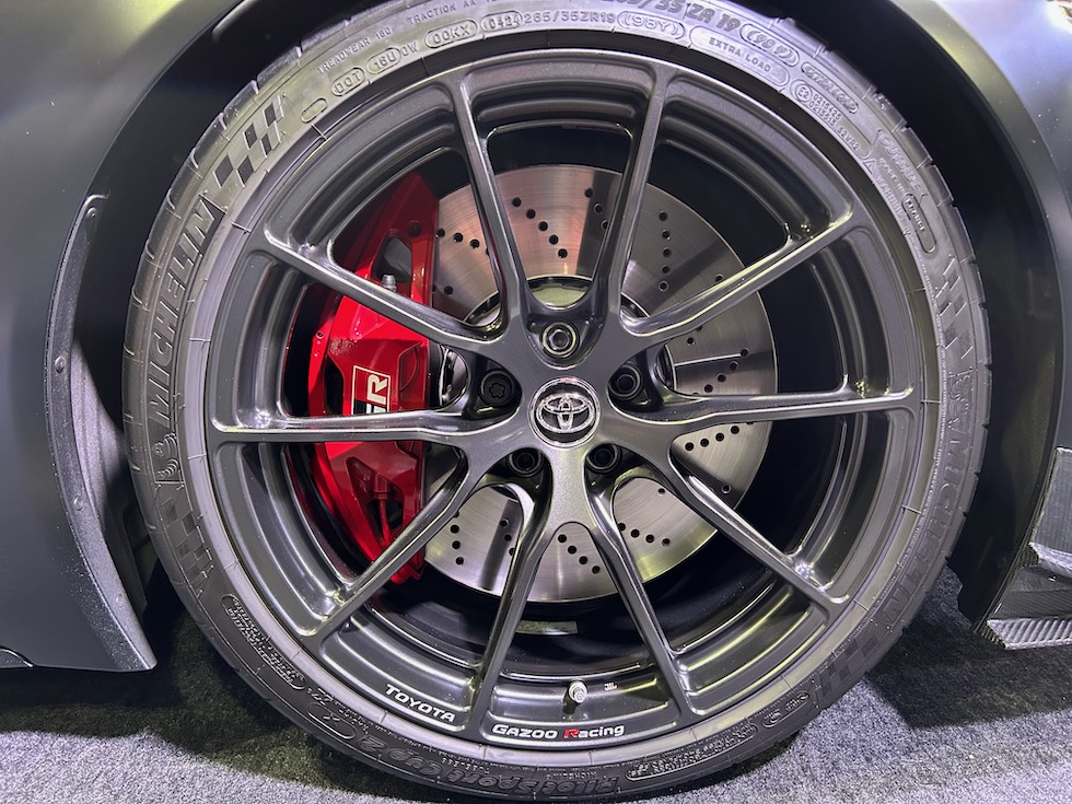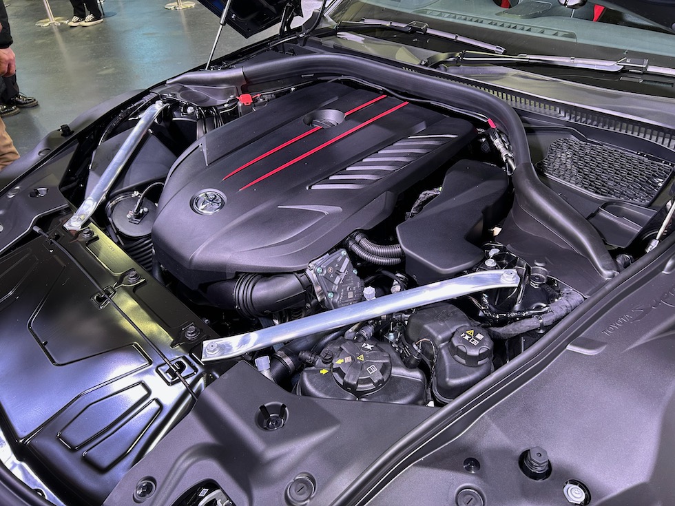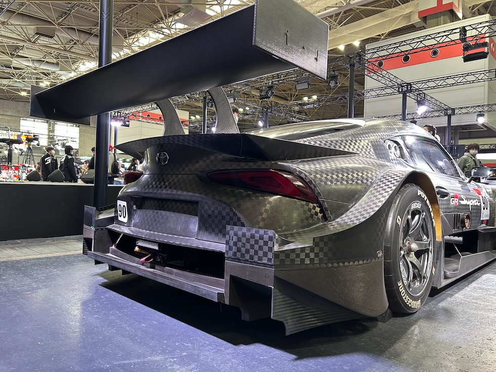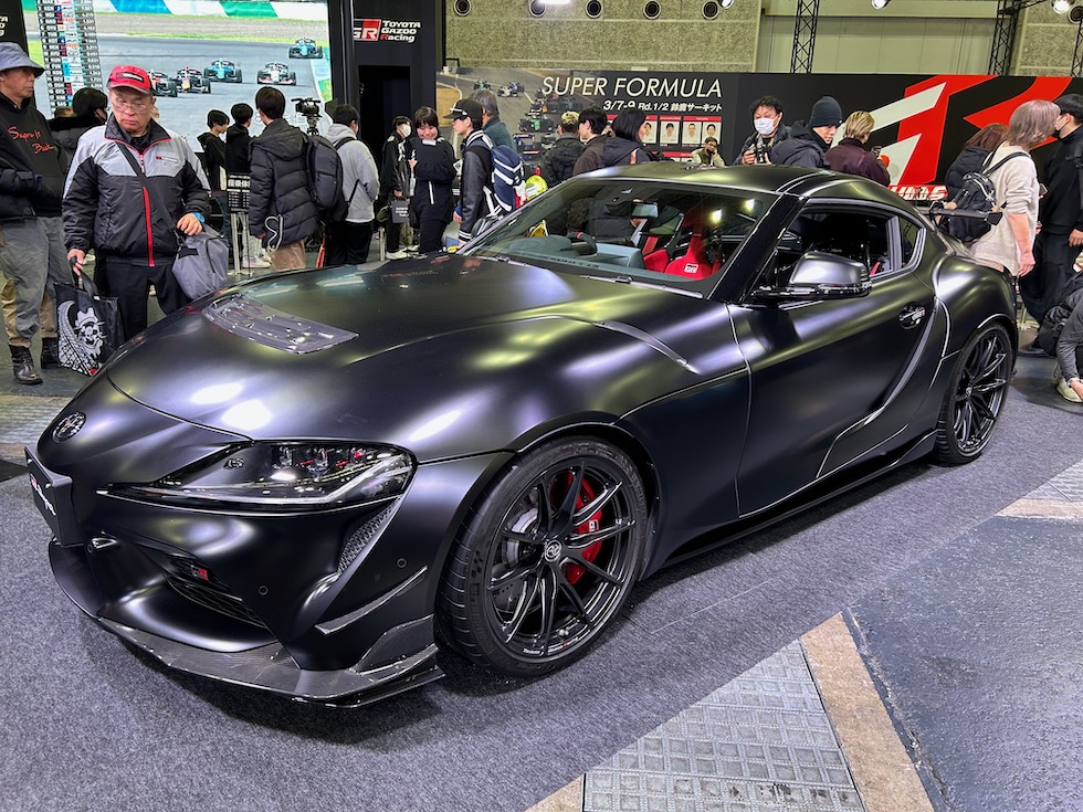 トヨタブースの目玉といえばスープラの現行モデル販売終了に伴い発表された。RZ ファイナルエディション、標準車両とはことなる補強パーツや、エアロパーツを装着する。特にフロントのスポイラーやリアウイングの迫力も生かしている。