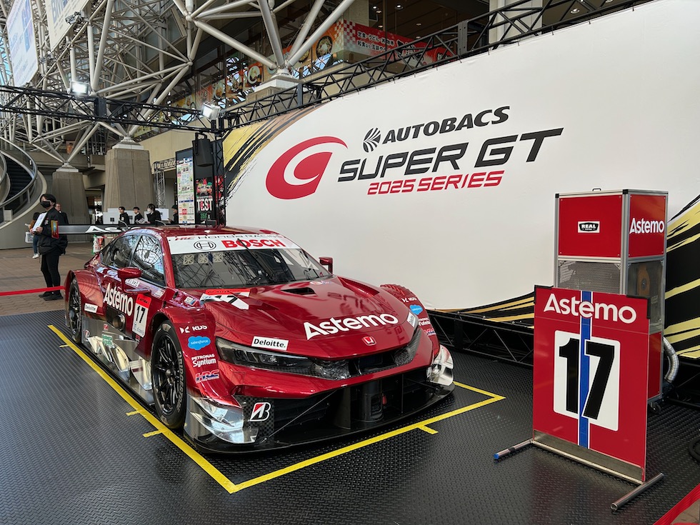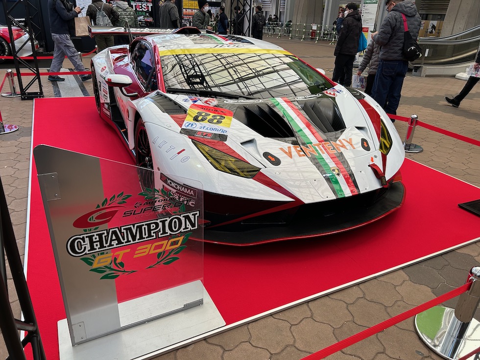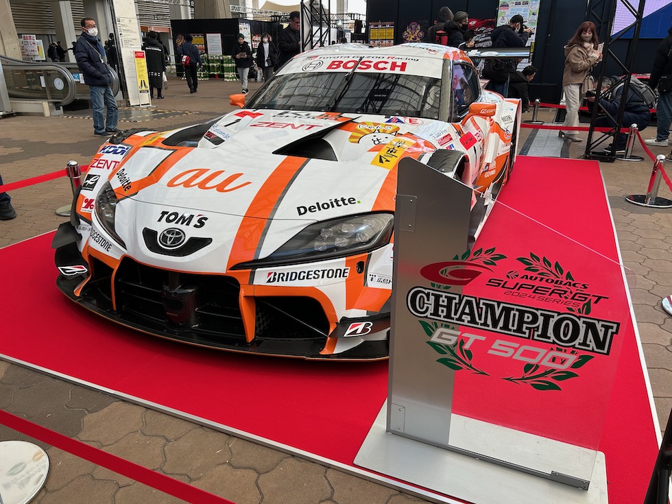 会場には例年SUPER GTの車両がゲートを通り抜けたメイン広場に鎮座。絶好のフォトスポットである。